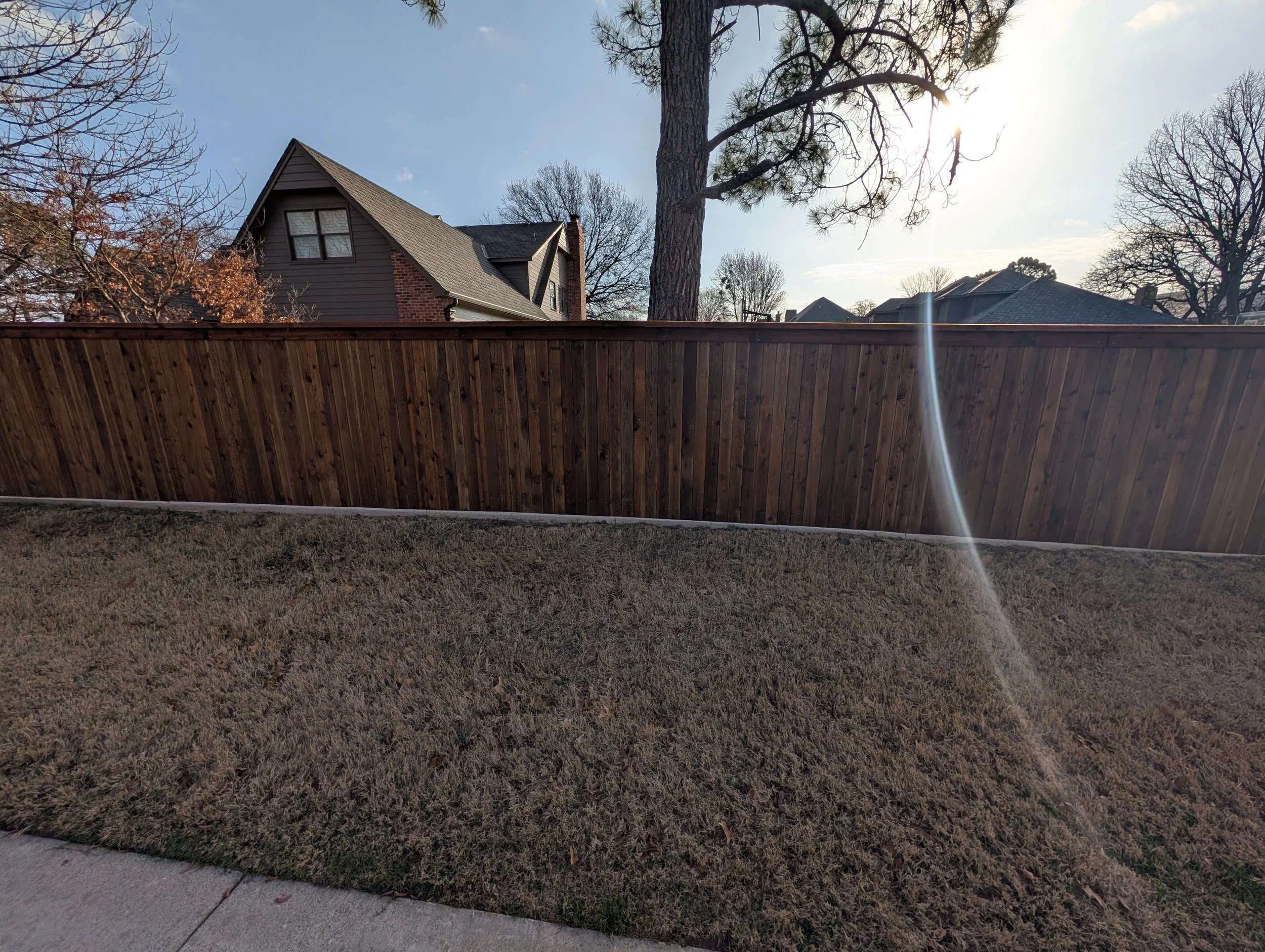 The cap helps protect the pickets from moisture while the trim gives the fence a more refined and architectural appearance. This style is especially popular in newer neighborhoods and HOA communities.